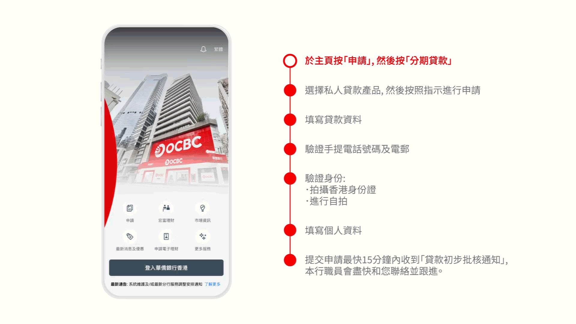 首先了解不同貸款類別的資料,然後選擇一款符合您需要的貸款產品。若您不清楚您需要的貸款類別及有關收費,您可與客戶服務主任聯絡,讓他們為您評估您的個人需要及為您介紹各類型的貸款產品,因應您的要求,從而為您推薦一款最適合您的貸款產品。