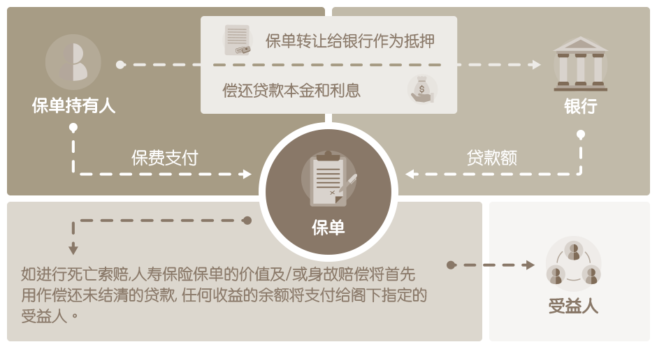 保单融资为给予客户以人寿保险保单作为抵押的贷款。此贷款旨在为客户提供财务灵活性供阁下在购买人寿保险单后获得额外的现金作个人支出之用。